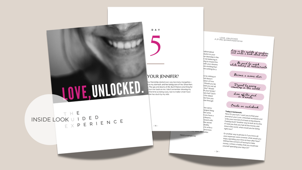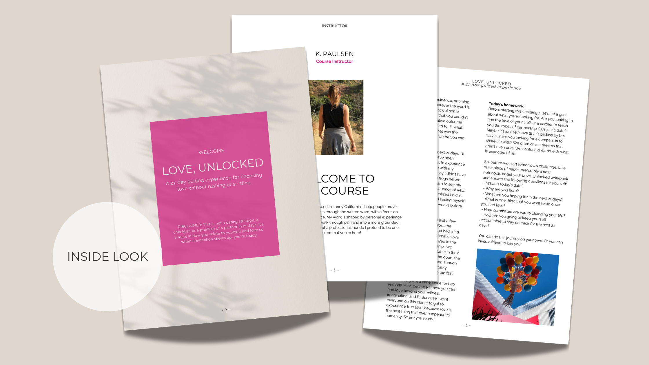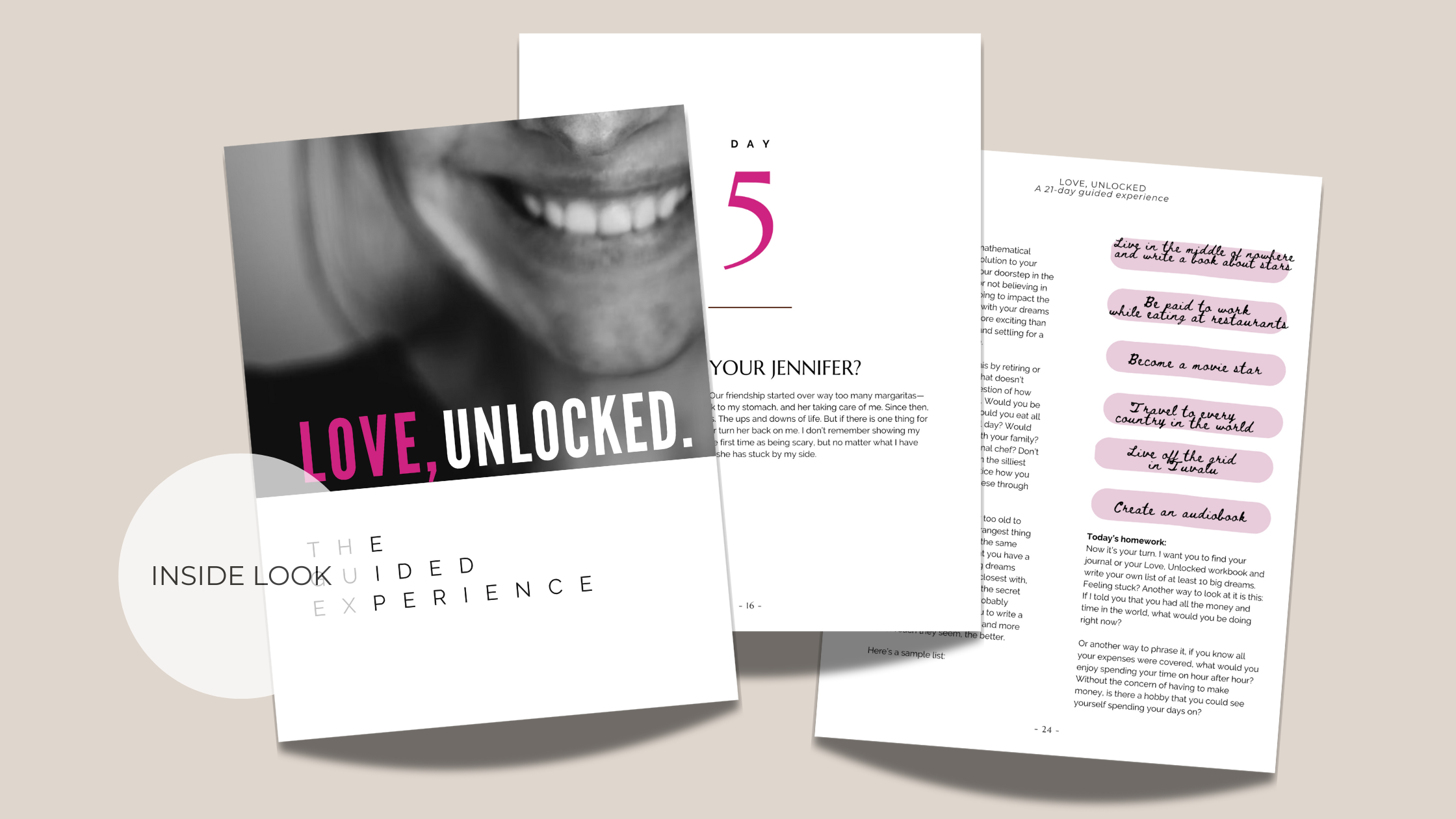 – The Love, Unlocked book, redesigned as a visual, reflective PDF with bonus materials